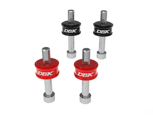 Pair of spacers machined from solid in light aluminum alloy and colored surface anodizing.