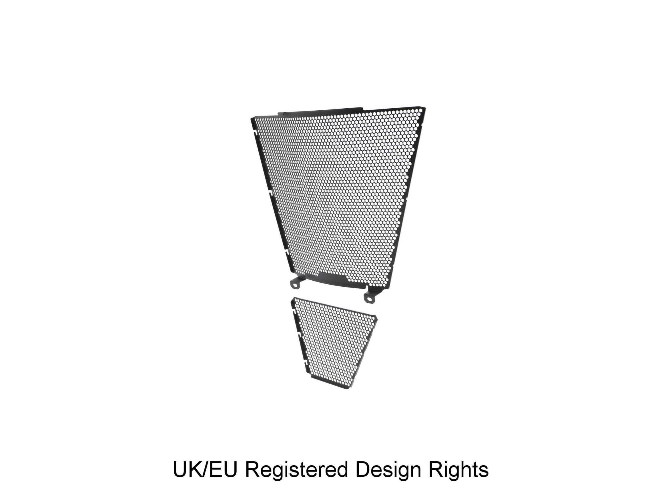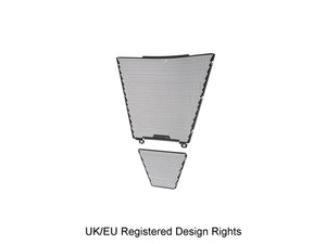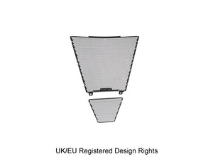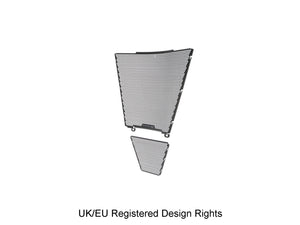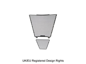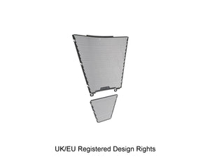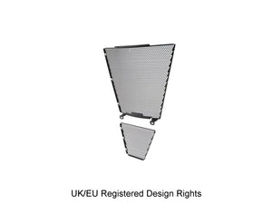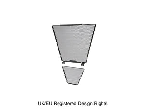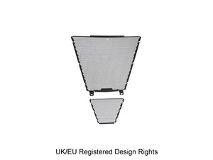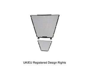 Simply put, EP Radiator Guard and EP Oil Cooler Guard protect these two vital components from major damage by road debris, while allowing the necessary cooling air to pass through. The radiator and oil cooler's delicate fins easily bend to restrict the flow of cooling air, which can lead to overheating and reduced engine performance. Both units have internal cores that are prone to being holed by stones etc. Leaking coolant will make the CBR 1000RR-R SP inoperable through overheating, while a holed oil cooler will reduce oil pressure and up the risk of engine damage.