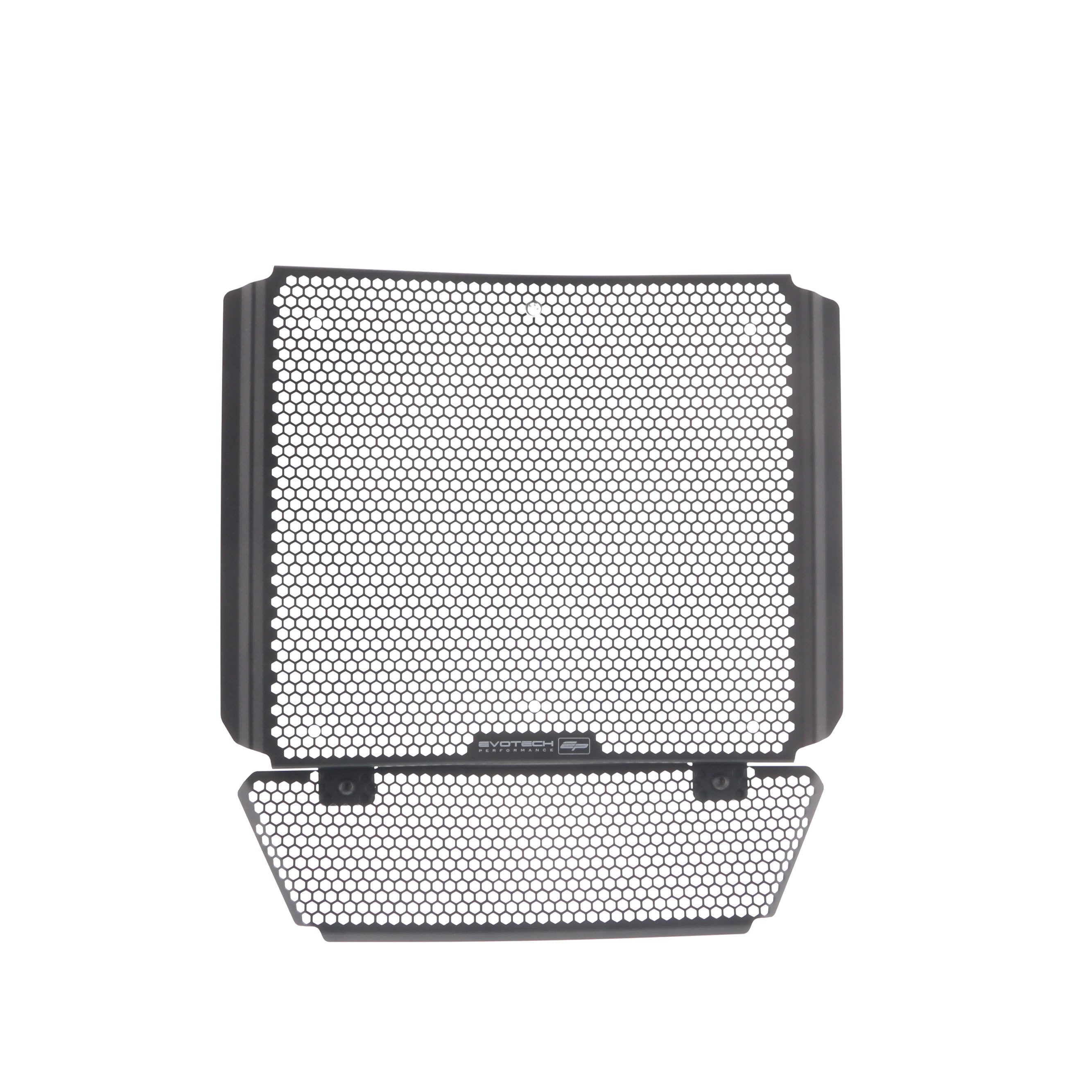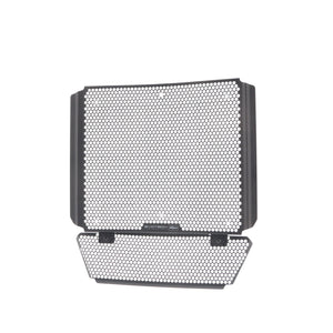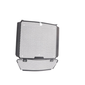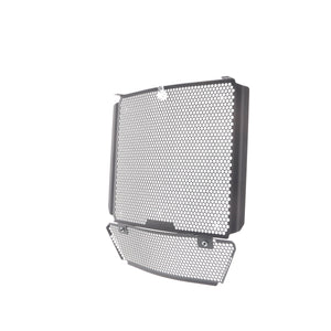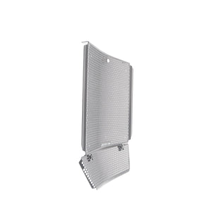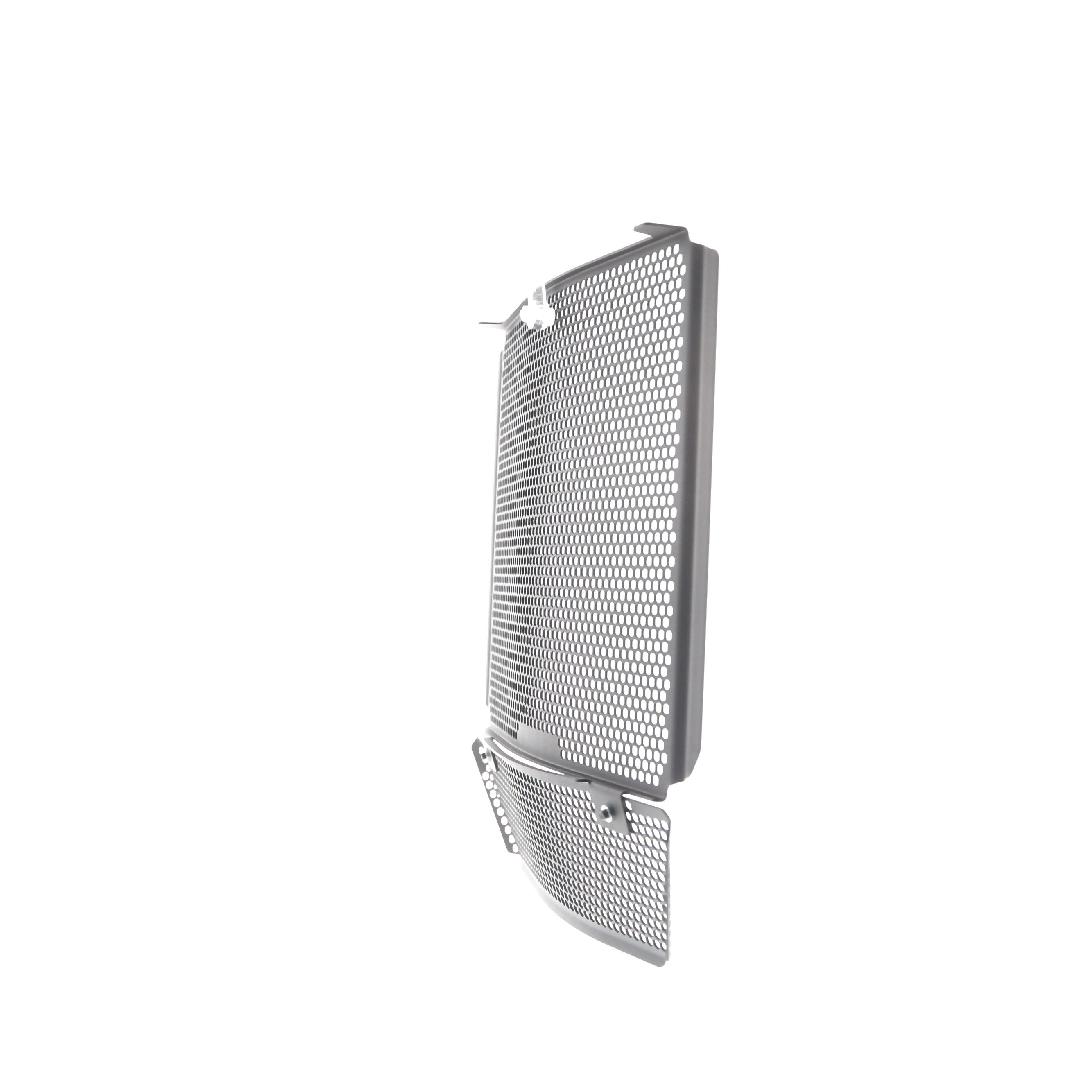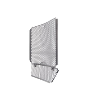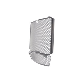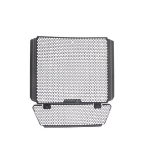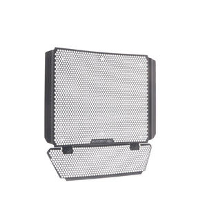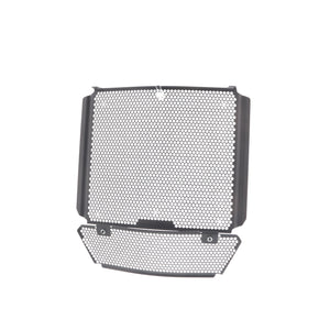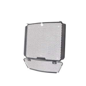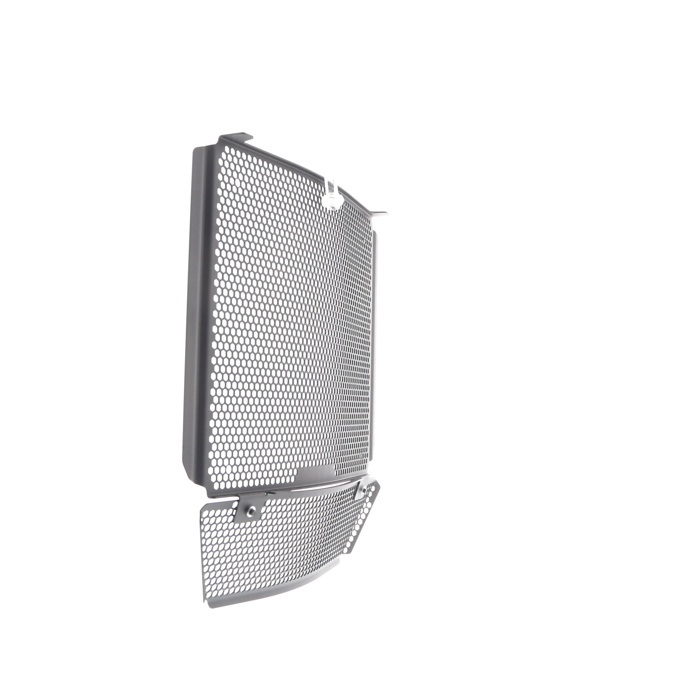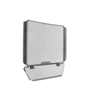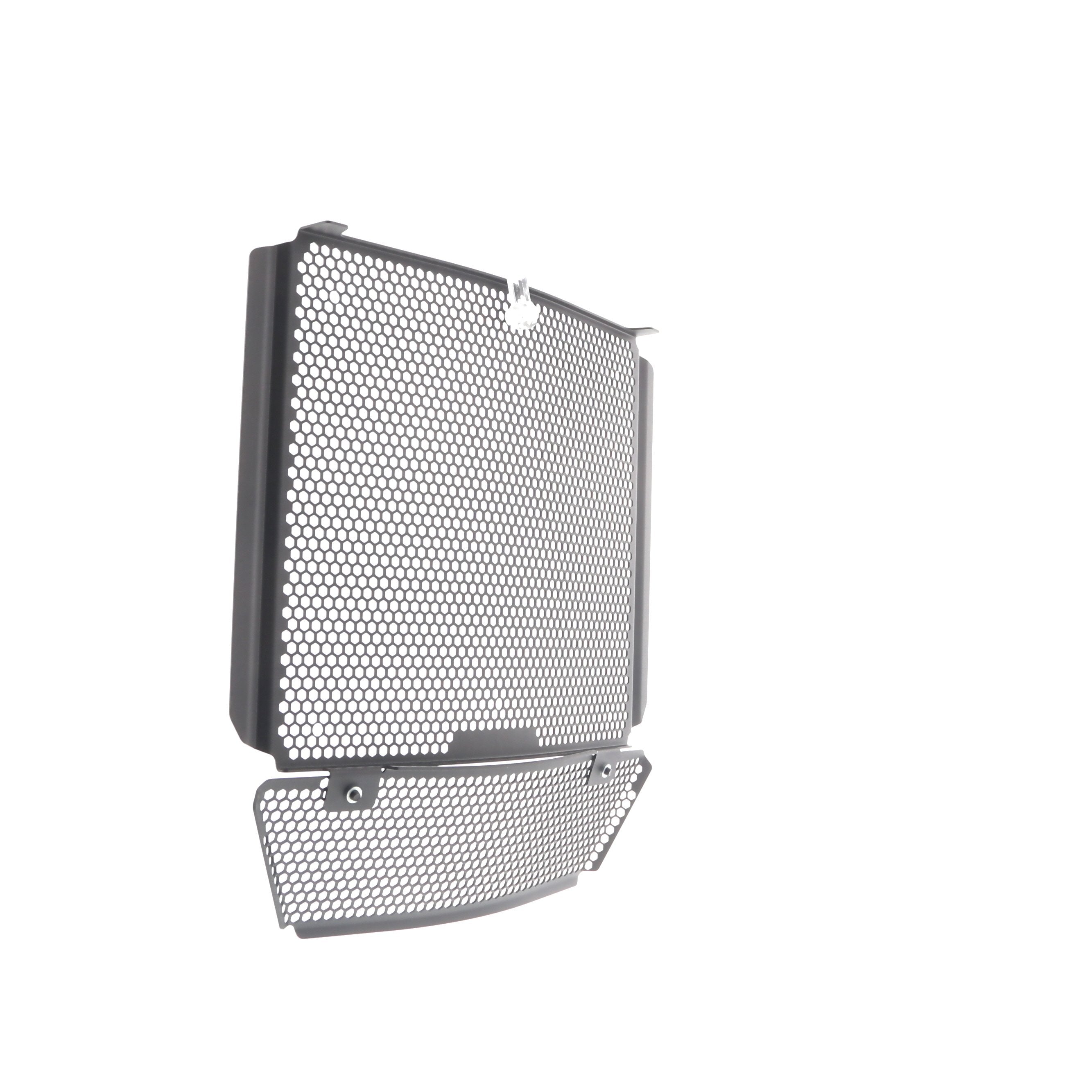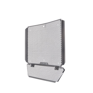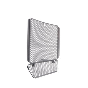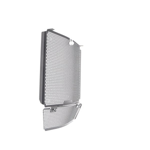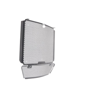 An EP radiator guard protects the Aprilia RS660 radiator from damage while allowing cooling air to pass through - and look good at the same time. A radiator's delicate cooling fins easily bend, and misaligned fins can cause overheating. The radiator's internal cores can also be holed by stones, etc; all usually picked up and flung directly into the radiator from the bike's front tyre or from other traffic. Leaking coolant will make the motorbike inoperable because of overheating, which can result in engine damage.