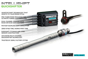 The Intellishifter Quickshifter ECUs feature Pro-Tuner-Mode where a professional user can simply and quickly alter the sensor Trigger force and set different interrupt times at specific engine RPMs providing total control, then the Intellishift protocol takes those settings and enhances them further.