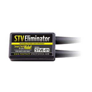 Due to emission and noise control regulations secondary throttle valves appeared in motorcycles in the last decade. This secondary butterfly is controlled by the bike?€?s ECU. For maximum performance and crisp throttle response this secondary system is removed ?€? mainly in drag racing / road racing. However, as soon as you disconnect the secondary throttle valve actuator motor from the bike?€?s main wiring harness, the FI light will come on on the instrument panel. The STV Eliminator plugs into the bike?€?s wiring loom directly. With the help of this small unit, you?€?re able to remove the whole secondary valve assembly with the actuator motor, the butterfly valve plates and the rod/shaft too. Get the job done properly with this easy fix!