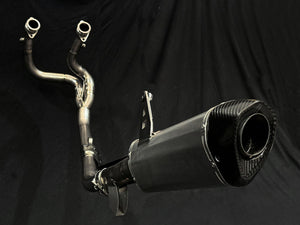 At Vandemon, when we say our exhaust is made from Titanium, it truly is! We are transparent with our customers and don't mislead by stating only the muffler skin is Titanium while the rest is stainless steel. All connections are CNC machined from solid billet titanium to ensure gas-tight couplings. Additionally, we provide carbon fibre guards for both style and protection.