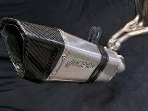 IMPORTANT! Vandemon Exhaust systems are designed for performance and modest sound improvements. We at Vandemon do not try to meet noise emission standards because the end results would be no different than what your OEM exhaust can already achieve. Check with your country's governing body regarding noise emission standards rules and regulations